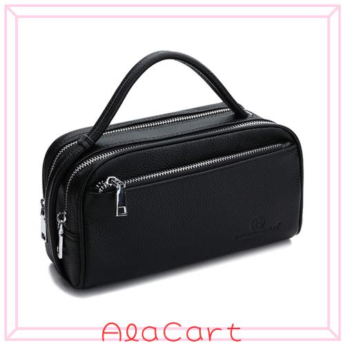 [ハナ] 2way革 ミニセカンドバッグ メンズ 小さめ クラッチバッグ 長財布 ダブルラウンドファスナー 小銭入れあり 7枚カード収納 手持ち