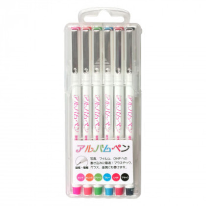 アルバムペン 油性染料 極細マーカー(0.3mm) 6色セット 106A |b03