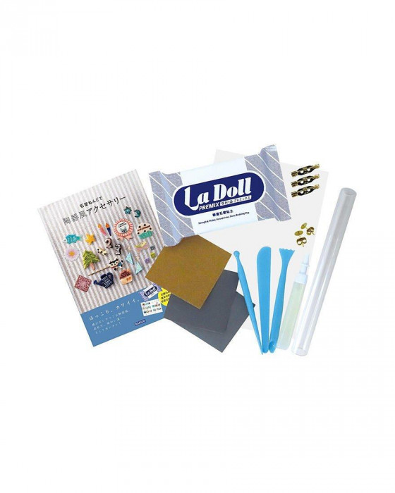 | セット内容 | ラドールプレミックス 120g×1個 水性ニス(ツヤだし)10ml×1本 粘土ベラ3本セット のし棒×1本 紙やすり(1804001000)各1枚 ブローチピン(ゴールド)×3個 ピアス金具(ゴールド)×1ペア クリアファイル(A5サイズ)×1枚 レシピ本(陶器風アクセサリー)×1冊 |