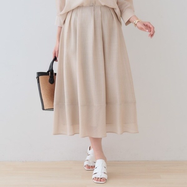 夏らしいエアリーな素材を使用した巻き風ロングスカートです。