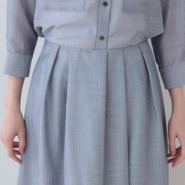 程よいシア?感と軽さを持った清涼感のある着心地に、シワになりにくいイージーケア性を兼ね備えた素材になっております。