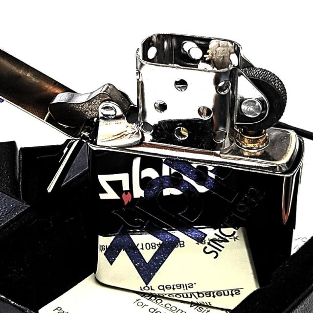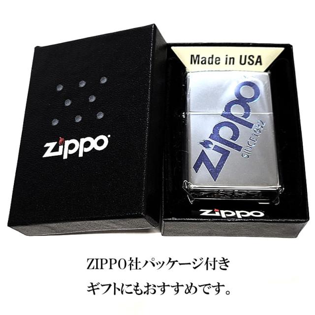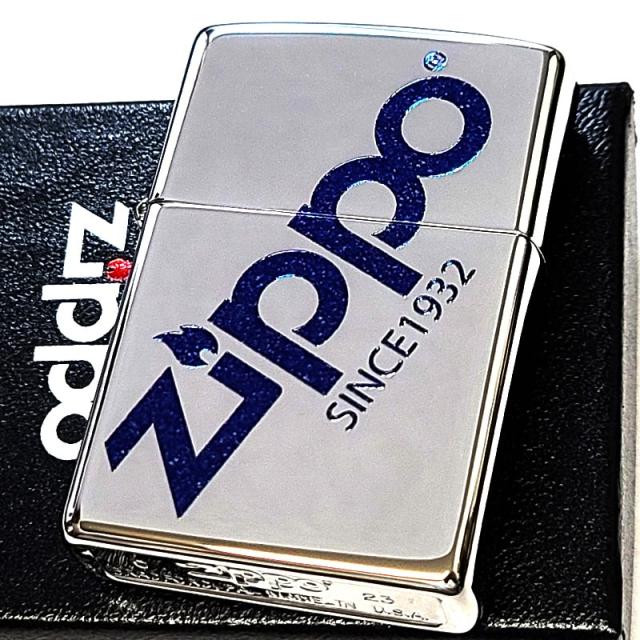 ZIPPO 鏡面 ロゴ ジッポ ライター シルバー&ブルーラメ かっこいい おしゃれ 青銀 メンズ ギフト レディース プレゼント