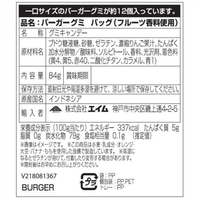 ちっちゃな一口サイズのミニバーガー!?その正体はフルーツグミで出来たジューシーバーガーです。 生産国:インドネシア 賞味期間:480日