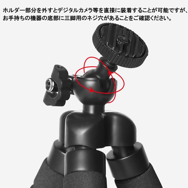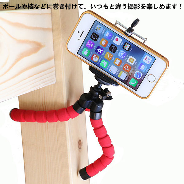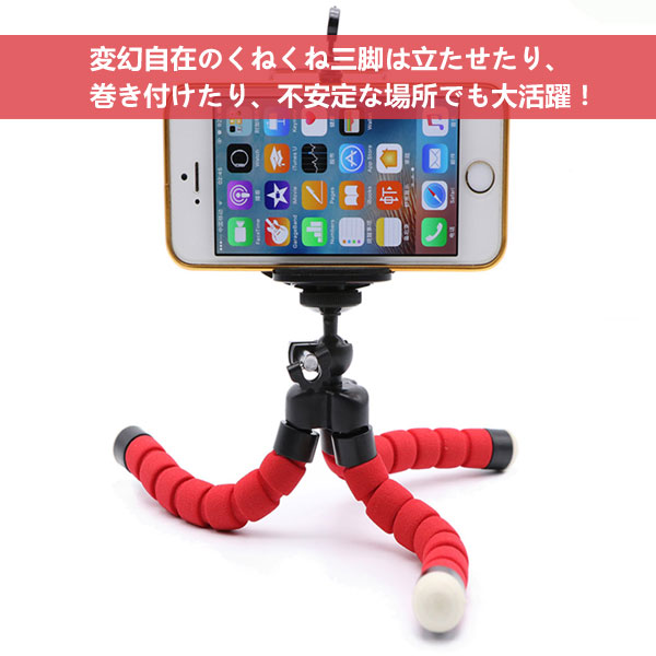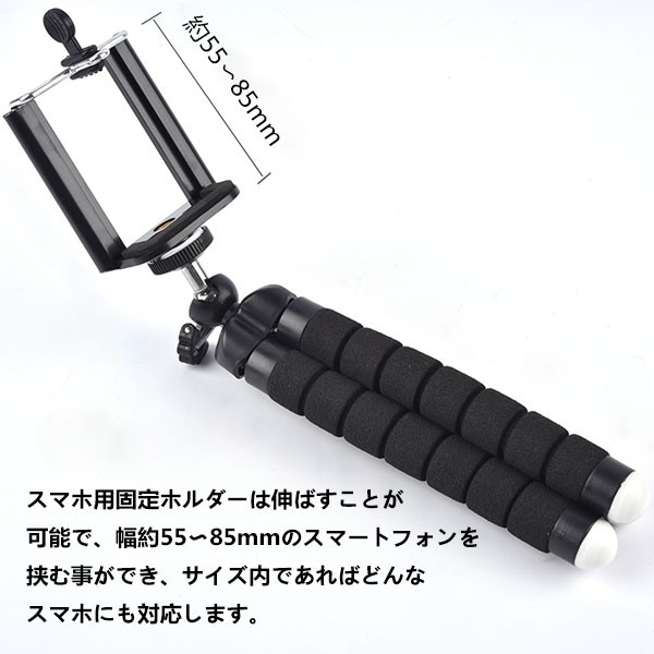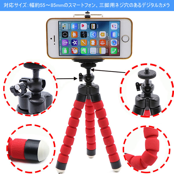 対応サイズ:幅約55〜85mmのスマートフォン、三脚用ネジ穴のあるデジタルカメラ 変幻自在のくねくね三脚は立たせたり、巻き付けたり、不安定な場所でも大活躍!ポールや枝などに巻き付けて、いつもと違う撮影を楽しめます!スマホ用固定ホルダーは伸ばすことが可能で、幅約55〜85mmのスマートフォンを挟む事ができ、サイズ内であればどんなスマホにも対応します。挟みこむだけでしっかり固定!ホルダー部分を外すとデジタルカメラ等を直接に装着することが可能ですが、お手持ちの機器の底部に三脚用のネジ穴があることをご確認ください。タブレットスタンドとしてもOK!