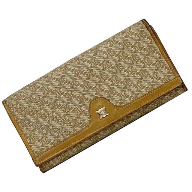 セリーヌ 二つ折り がま口 長財布 ec-22259 ベージュ マカダム 財布 PVC レザー 中古 M06 CELINE ロゴ がまぐち ホック ウォレット ヴィンテージ ロング 定番 人気 女性 レディース 革 シンプル お洒落 エレガント 小物 高級感 上品 ブランド 本物 鑑定済み