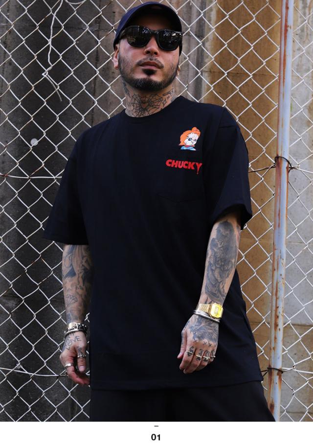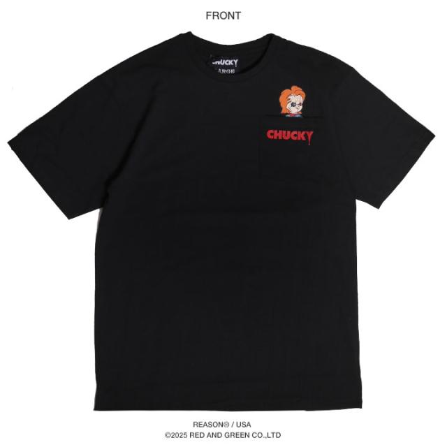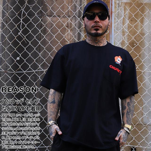 ラスト1点【40%OFF】REASON × Chucky Tシャツ 半袖 メンズ 黒 大きいサイズ 映画 チャッキー Childs Play チャイルド・プレイ 限定 コラボ 公式 リーズン ポケット付き ビッグシルエット b系 ヒップホップ ファッション ストリート系 ブランド 服 2025春夏 CKY45
