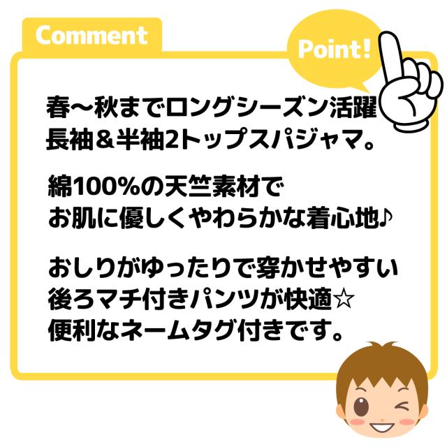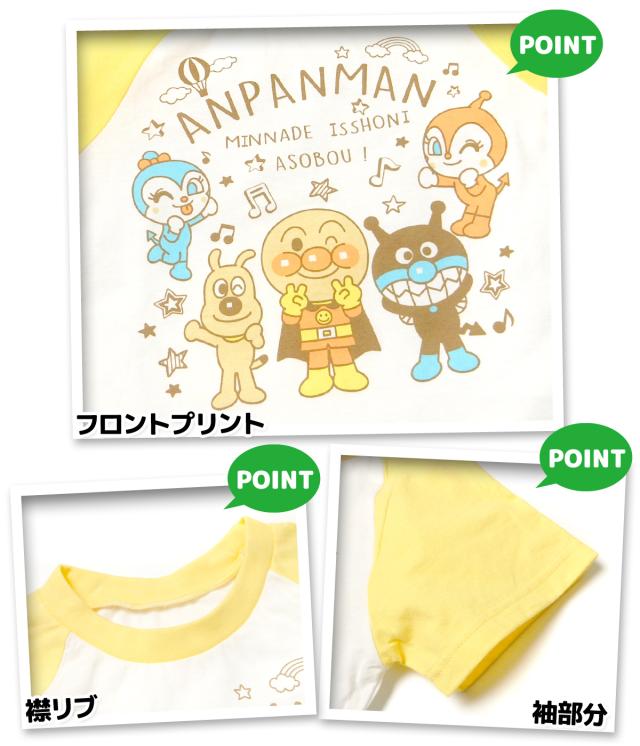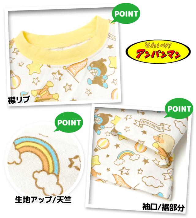 【送料無料】男児 ベビー アンパンマン 長袖 半袖 2トップス パジャマ アンパンマン 上下組 綿100% 天竺 マチ付きパンツ ネームタグ 80cm 90cm 95cm iw-1223b-ye【メール便対応】