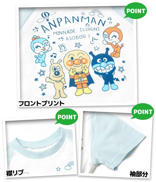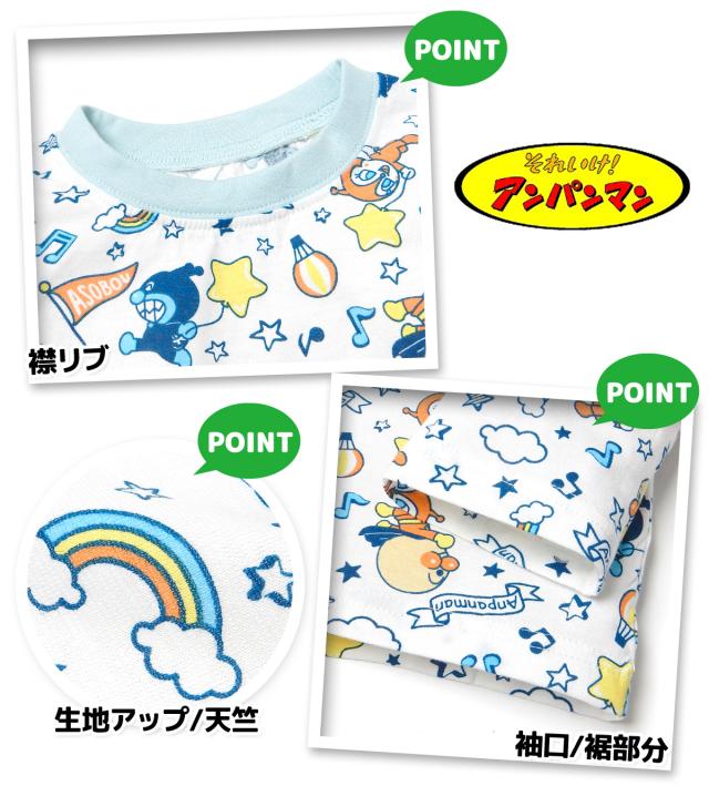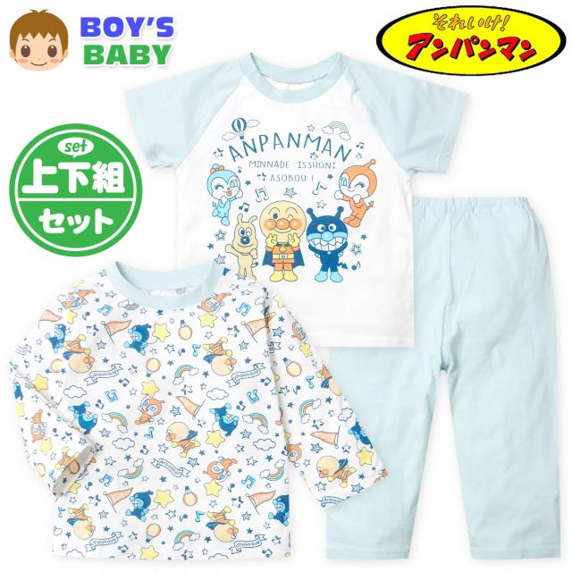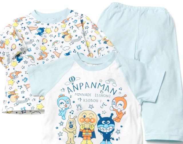 【送料無料】男児 ベビー アンパンマン 長袖 半袖 2トップス パジャマ アンパンマン 上下組 綿100% 天竺 マチ付きパンツ ネームタグ 80cm 90cm 95cm iw-1223c-sx【メール便対応】