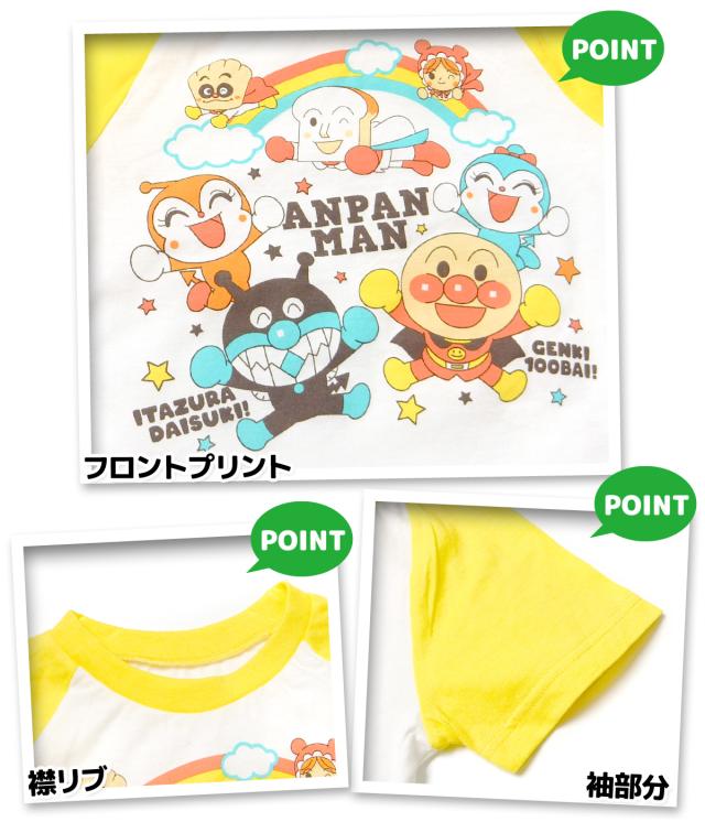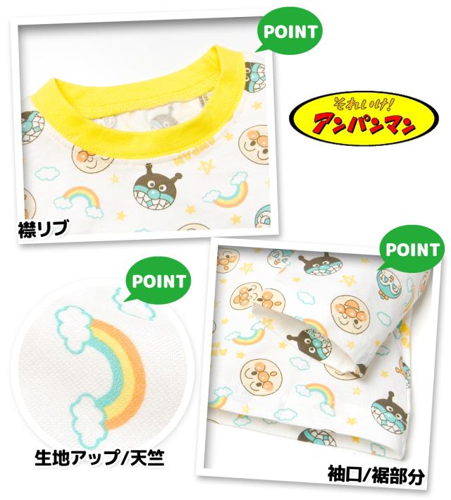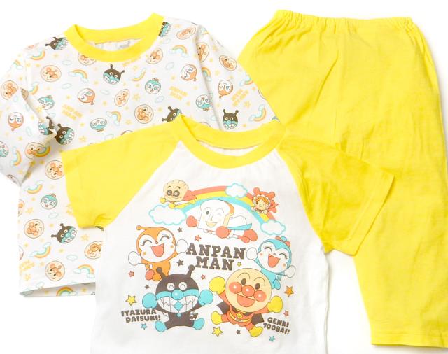 【送料無料】男児 ベビー アンパンマン 長袖 半袖 2トップス パジャマ アンパンマン 上下組 綿100% 天竺 マチ付きパンツ ネームタグ 80cm 90cm 95cm iw-1227b-ye【メール便対応】