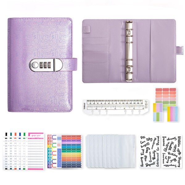 ?内容:【セキュリティロック機能付き】 PU製バインダー・ジッパーポケット×8個・予算シート×12枚・英字ラベル・メモ用ラベル・DIYラベル・定規