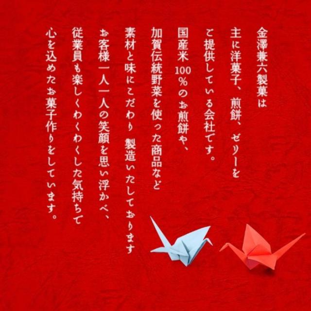 | 製造(販売)者情報 | 【製造者】 株式会社金澤兼六製菓 三重工場 三重県伊賀市西明寺2380-1 |