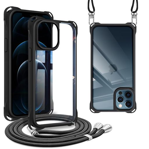 IPHONE 12 PRO MAX 用の ケース ショルダー ストラップ IPHONE12 PROMAX 用の カバー 斜めがけ 肩掛け 首掛け ハード 韓国 アイフォン12 PRO MAX 用の スマホケース ブラック