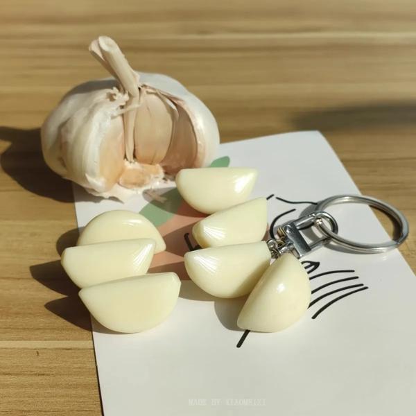 シミュレートされたニンニクのクローブキーチェーン、女性のバッグチャーム、フードカートキーチェーン、学生、子供、カップルのアクセサリー、1:1