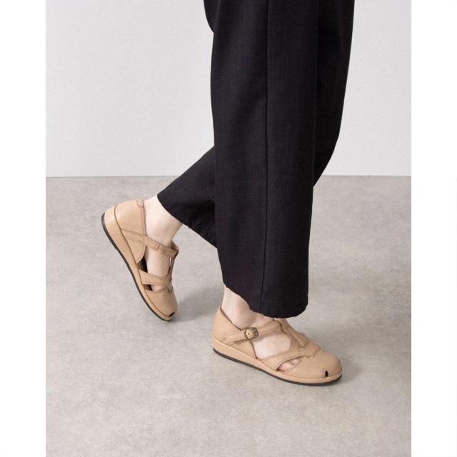 柔らかい革を贅沢に使用し、フラットソールでかかとがしっかりと固定されるため、歩行中も安心感があります。