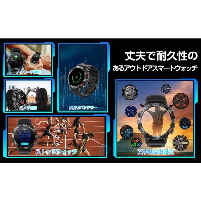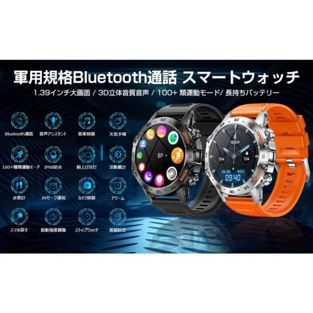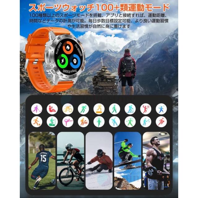 スマートウォッチ 血圧測定 日本製 センサー スポーツウォッチ 通話機能 400mAh長持ちバッテリー GPS運動記録 歩数 軍用規格