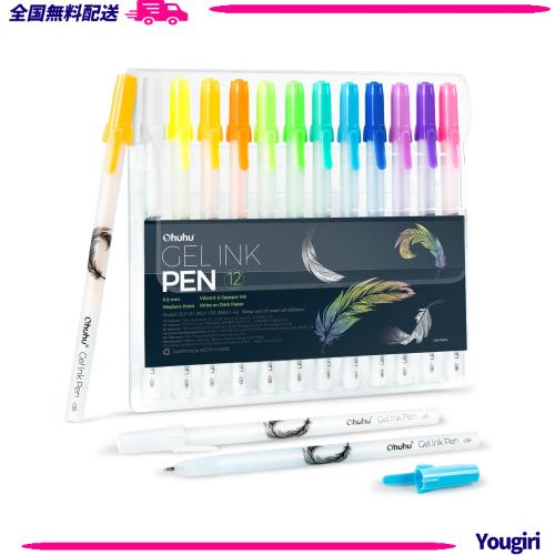 ◆商品名:Ohuhu ゲルインクボールペン 12色 カラーゲルインクペン 白ペン ホワイトペン 細字 0.8mm 水彩画のハイライト用 手帳 黒色の紙 ノート