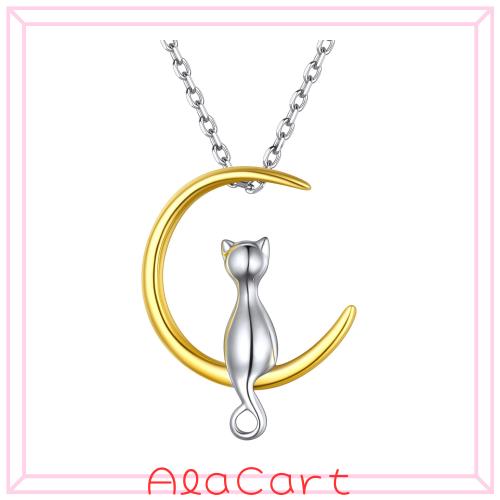 ?[猫ネックレス]? 神秘的でロマンチックな月と可愛らしい猫モチーフのネックレス!いつでも猫ちゃんと一緒にいたい、貴女のためのネックレス。猫好きな方への誕生日や記念日のプレゼントとしてもおすすめです!