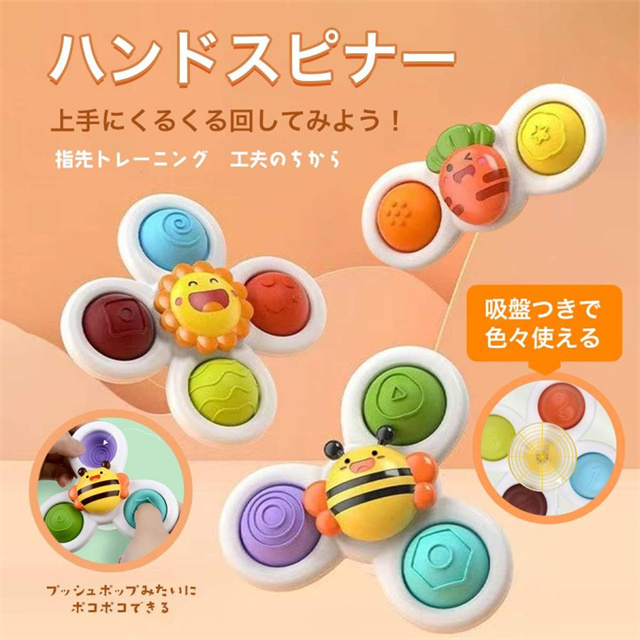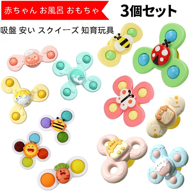 ハンドスピナー 赤ちゃん お風呂 おもちゃ 3個セット 誕生日プレゼント 1歳 2歳 3歳 プッシュポップ 吸盤 安い スクイーズ 知育玩具 送料無料