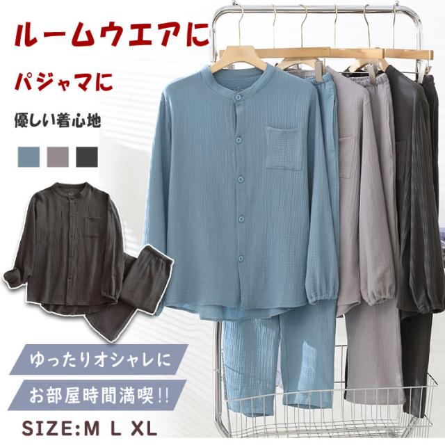 パジャマ メンズ ルームウエア 上下セット 送料無料 前開き ボタン 入院時の診察にも便利 メンズパジャマ メンズルームウエア 部屋着 寝巻き ワンマイルウエア セットアップ 薄手 柔らか 通気性 サラッと優しい肌触り 誕生日 父の日 プレゼント