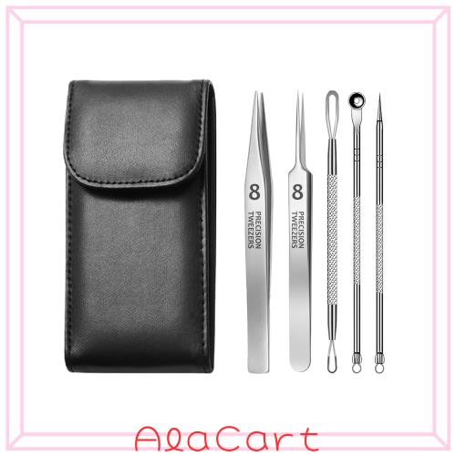 【セット内容】 先の細い0.01mmピンセット×1本、1.2mm平口ピンセット×1本、ニキビ針×1本、両頭押出ロッド×1本、ボウル型の押出ロッド×1本、収納用レザーケース(3倍拡大鏡内蔵)×1本、 取扱説明書×1本。 いちご鼻 黒ずみ の原因、角栓や ニキビ の状態や用途に合わせて使い分けていただけます。肌悩みに合??わせたピンセットセットで、小鼻周りの黒ずみや極細毛玉、毛穴の角栓などを取り除きます。