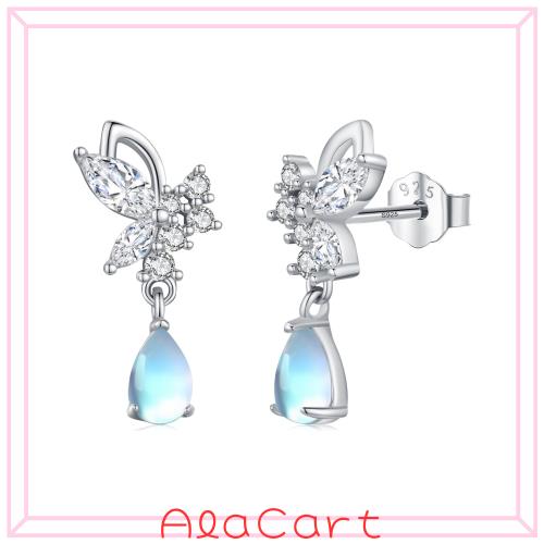 StoryMidir 蝶々 ピアス ムーンストーン 揺れるピアス シルバー925 プラチナ仕上げ ジルコニア スタッドピアス 雫 スウィングピアス レデ