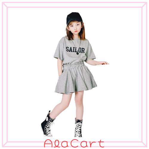 [Rolanko] 子供服 女の子 セットアップ 半袖tシャツ キュロットスカート ガールズ 夏服 スポーツウェア ジャージ 上下セット ダンス 可愛