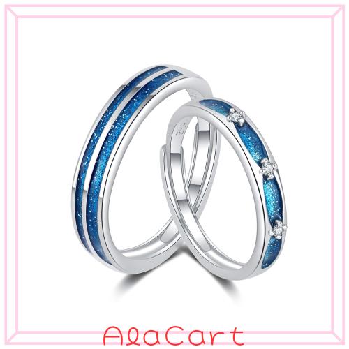 [MIYEKI] ペアリング カップルリング フリーサイズ 人気 925銀河指輪 2個セットシルバー アレルギー対応 婚約指輪 専用ボックス付き