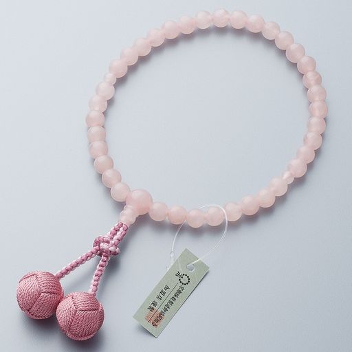 淡いピンク色が可愛らしい天然石の紅水晶(ローズクオーツ)を使用した女性用の念珠です。上品な優しい色合いで、女性に大変人気があります。
