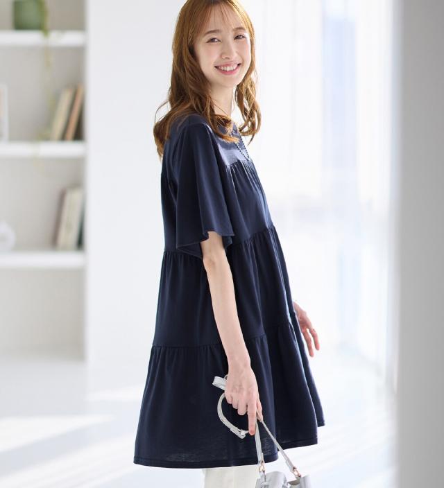 楽に可愛く!ふんわり綿混ティアードチュニック