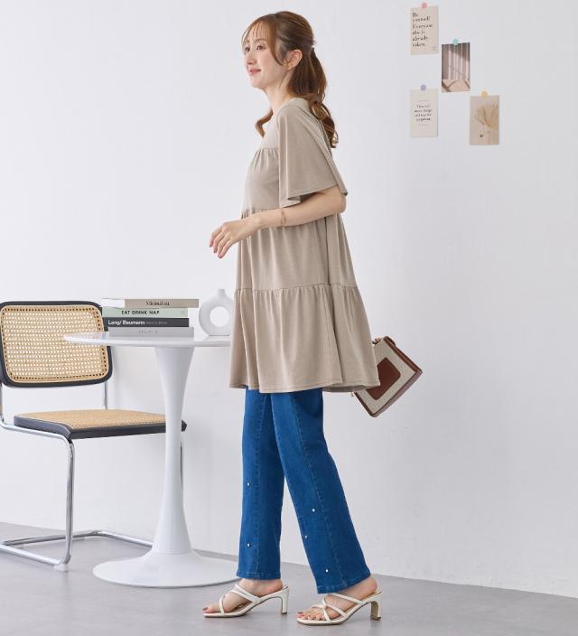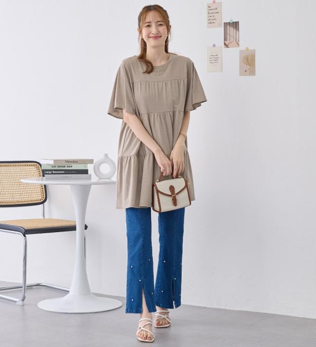 ・フレアー袖なので気になる二の腕もしっかりカバーできます。