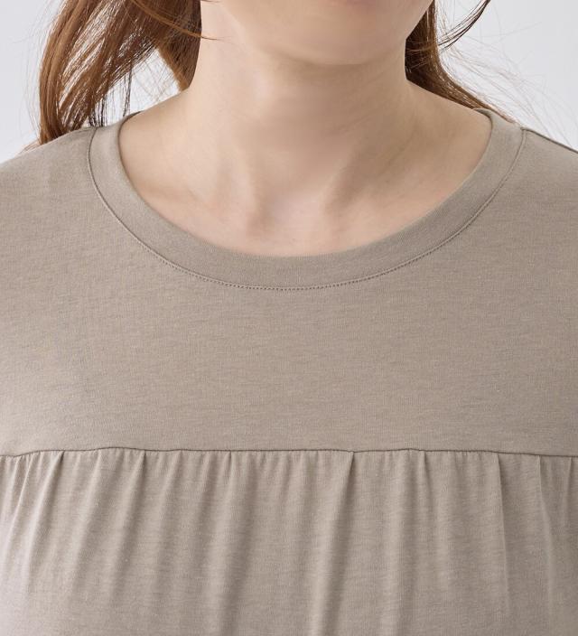 ・ギャザーの重ね技が目を惹くデザイン。ギャザーの位置はバストに引っかかりにくい絶妙配置。