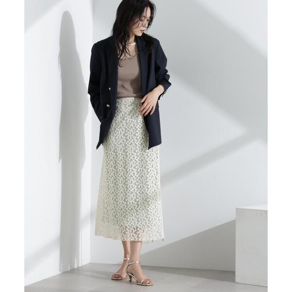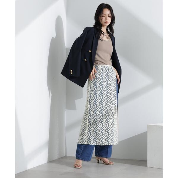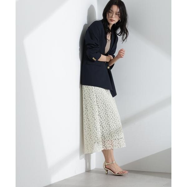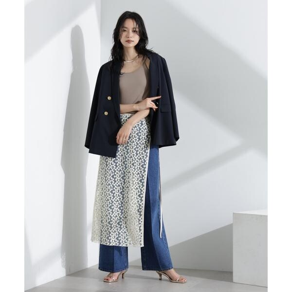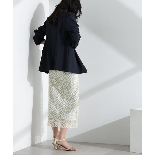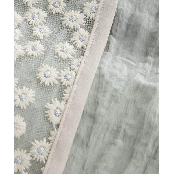 花柄の刺しゅうをチュールに施したレースラップスカート。シアー感のあるチュールと鈍い光沢感のペチコートの生地の重なり感が特徴のアイテム。ウエスト部分はあえてゴムにせずレーススカートと重ねた際にスッキリ見えるようにこだわった一枚です。
