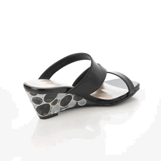 抜け感ある涼しげなクリア素材にデザインを施したコンフォートサンダル。