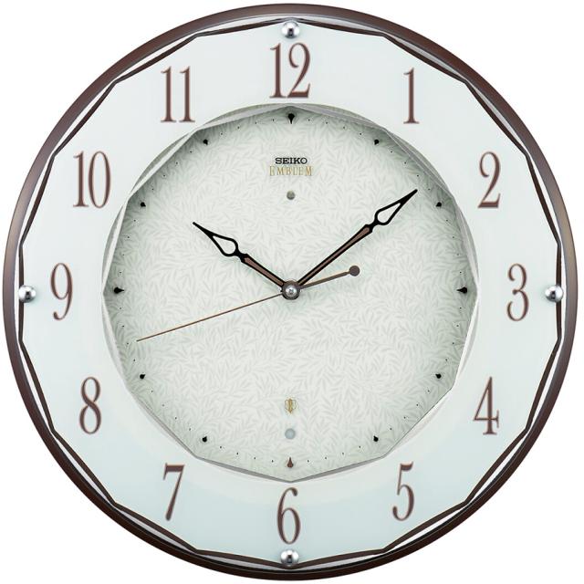 セイコー エムブレム 電波 掛け時計 スマイラックス柄 ブラウン HS524B クオーツ 電池式 クロック アラビアインデックス