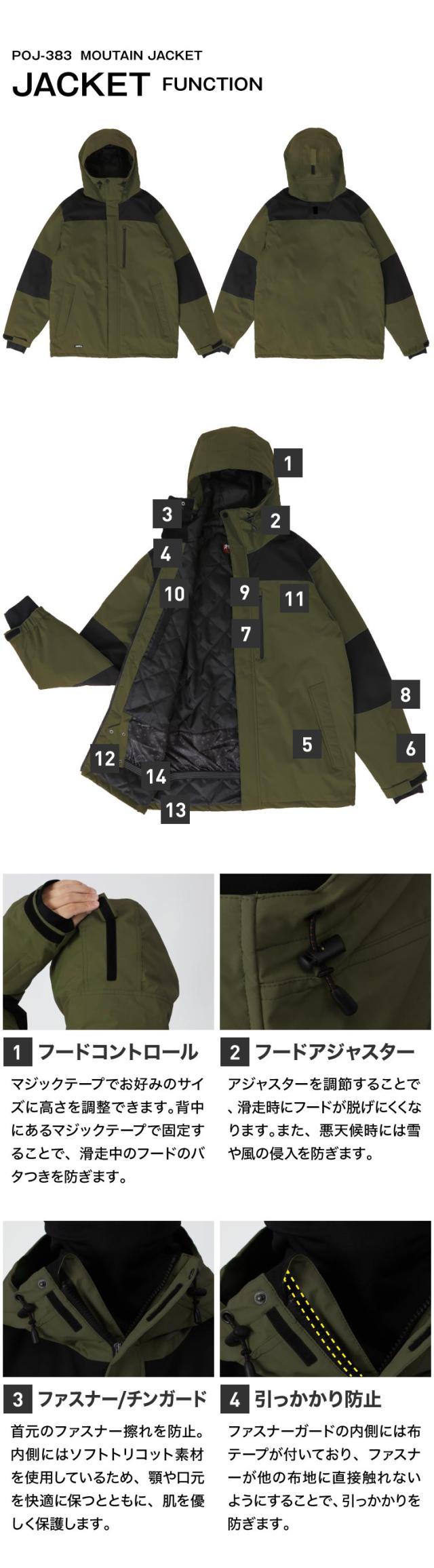 アウトドアウェア アウター スノーボードウェア スキーウェア メンズ レディース ジャケット 単品 保温 中綿 撥水 防寒 POJ-383_OD