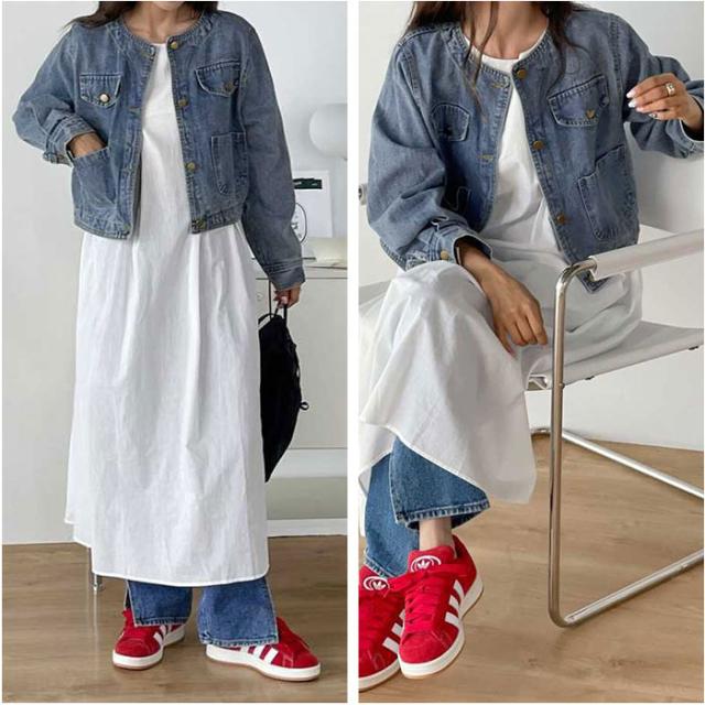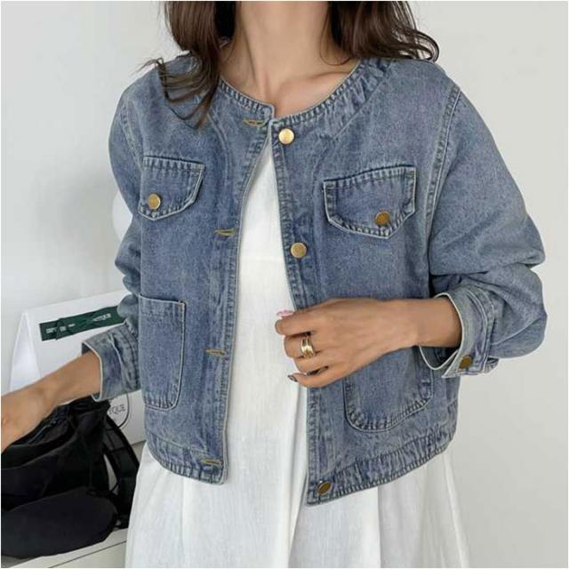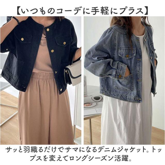 デニムジャケット レディース 通販 ノーカラージャケット デニム ジャケット ノーカラー ブルゾン Gジャン ジージャン ノーカラーデニムジャケット 春 秋 大人 きれいめ オシャレ