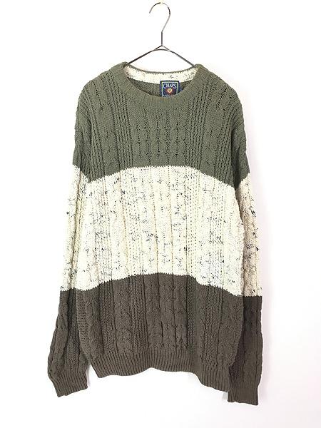 古着 90s USA製 CHAPS Ralph Lauren ケーブル×ボーダー コットン ニット セーター L 古着