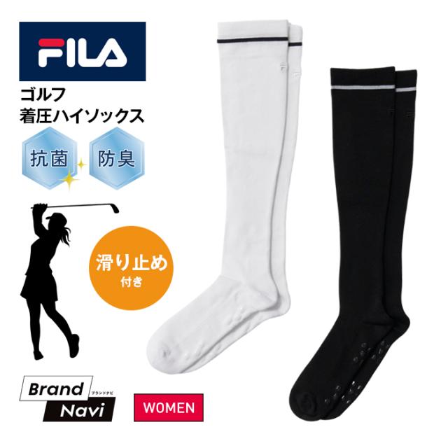 ハイソックス ゴルフ フィラ レディース 女性用 靴下 着圧 抗菌 防臭 滑り止め スポーツ スイング 運動 快適 ブラック ホワイト