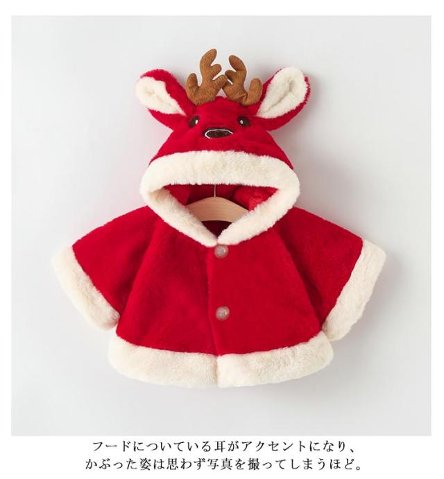 マント コスプレ ふわふわ 上着 トナカイ アウター 男の子 冬 コート ケープ ベビー服 ベビー ベビー ベビー 赤ちゃん 女の子 もこもこ キッズ 羽織り 出産祝い 防風 防寒 あったか 70 80 90 100 お出かけ 着る毛布 袖付き かわいい