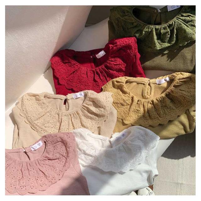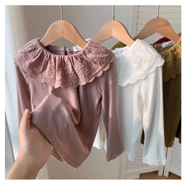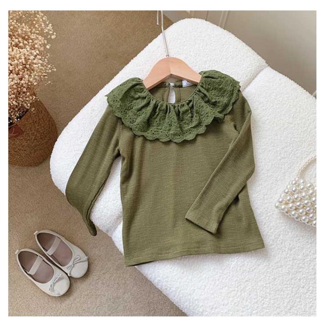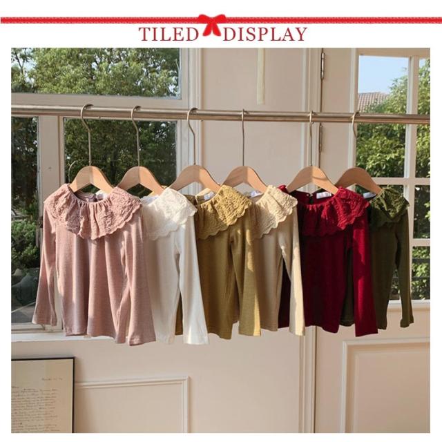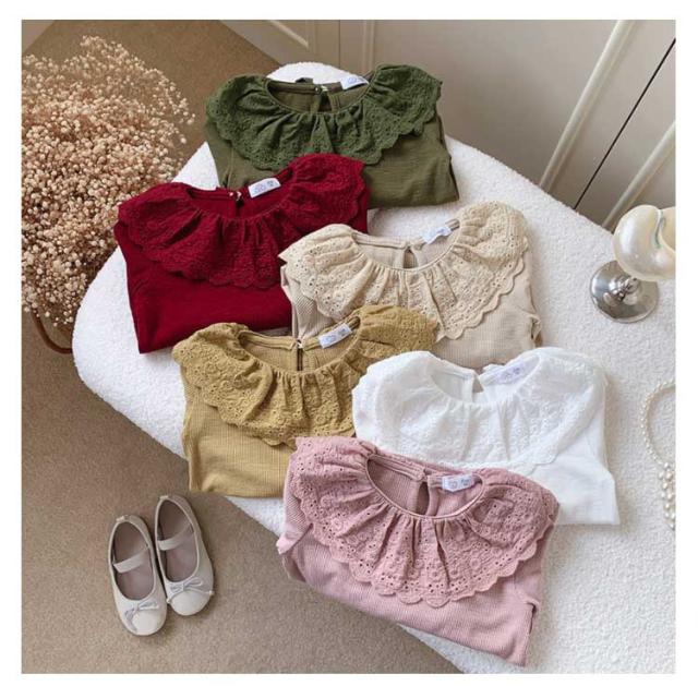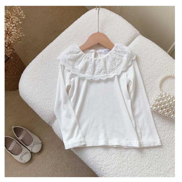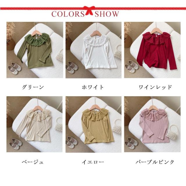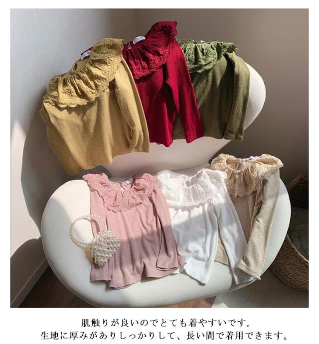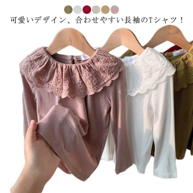綿 無地 部屋着 子供服 Tシャツ 長袖 カットソー ロングtシャツ 可愛い 90 丸襟 レース襟 女の子 春秋冬 トップス 肌着 ガールズ インナー ベビー 上着 女児 可愛い 100 110 120 130 140