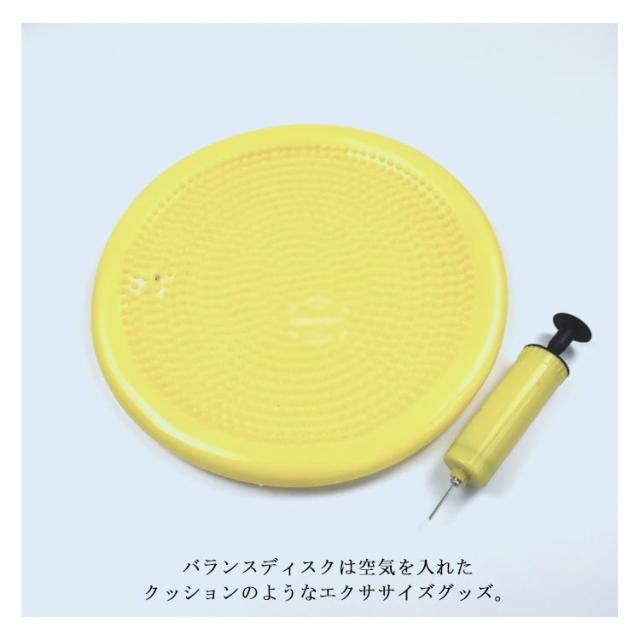 | バランスディスク どこでも気軽に体幹トレーニング バランスディスクは空気を入れたクッションのようなエクササイズグッズ。 | |