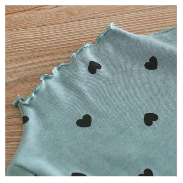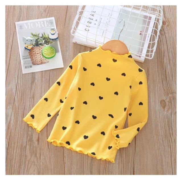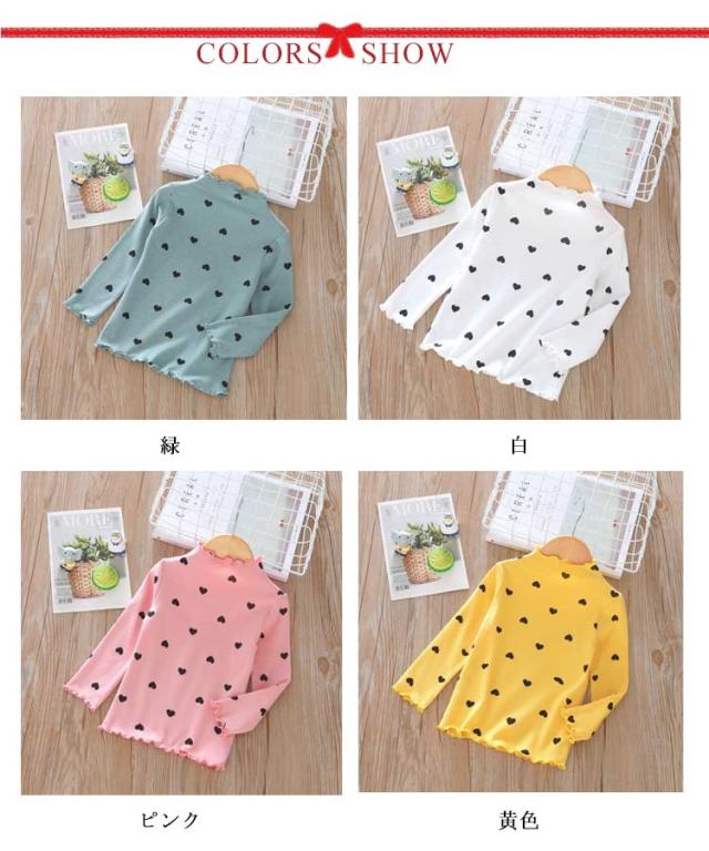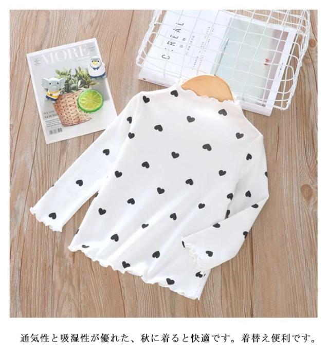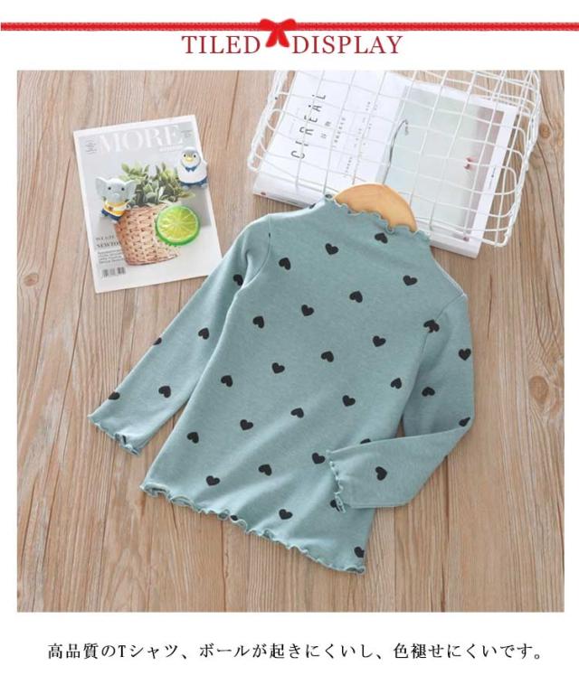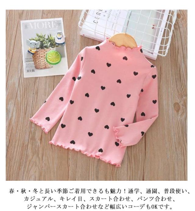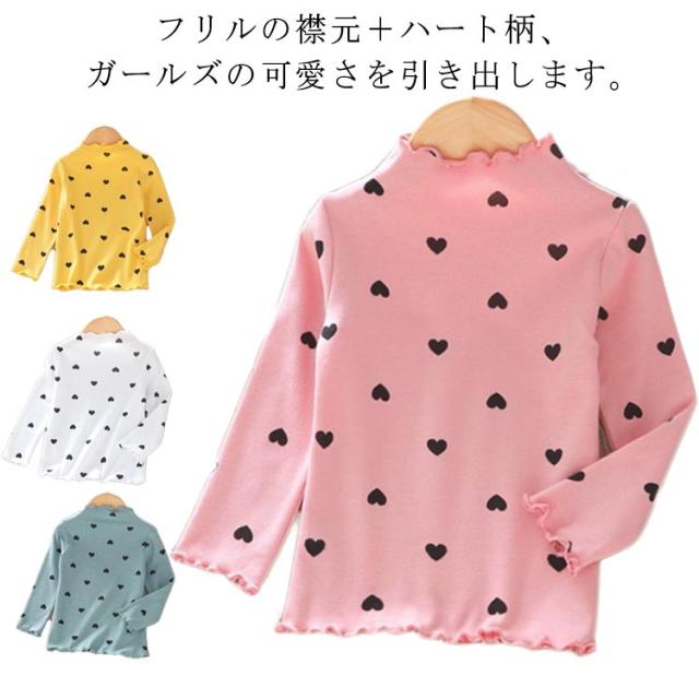 部屋着 Tシャツ 長袖 ハイネック 女の子 カットソー ガールズ 可愛い 子供服 トップス 春秋冬 ハート柄 インナー ハート柄 肌着 キッズ フリル 上着 ベビー 90 100 110 120 130 140