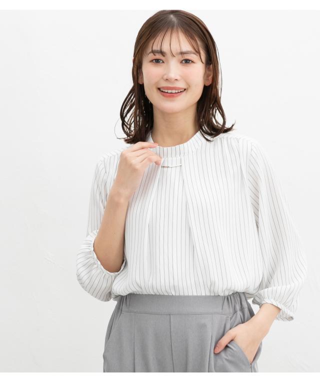 ボウタイを内側に隠してスタンドカラーにもできる2way仕様。