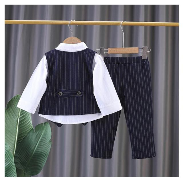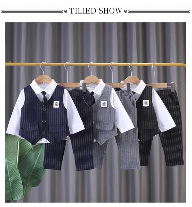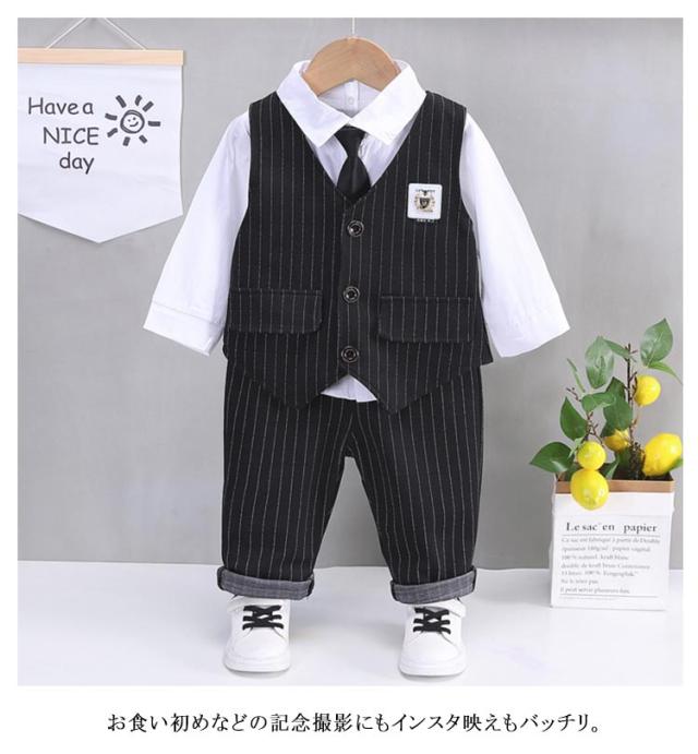 3点セット ベスト ストライプ柄 男の子 七五三 フォーマル キッズ 入園式 春 子供 ベビースーツ 冬 秋 フォーマル ロングパンツ 男の子 上下セット 洋服 赤ちゃん セットアップ 可愛い 結婚式 入学式 卒園式