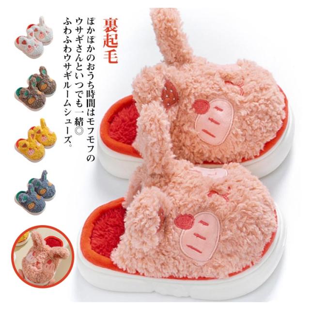 キッズ 裏起毛 ルームシューズ 室内 スリッパ ボア 子供用 ルームスリッパ もこもこ 動物 あったか ふわふわ 部屋履き ルームシューズ アニマル ウサギ 滑り止め 冬 防寒