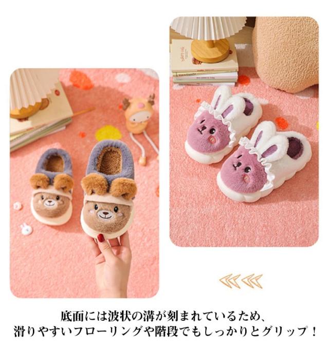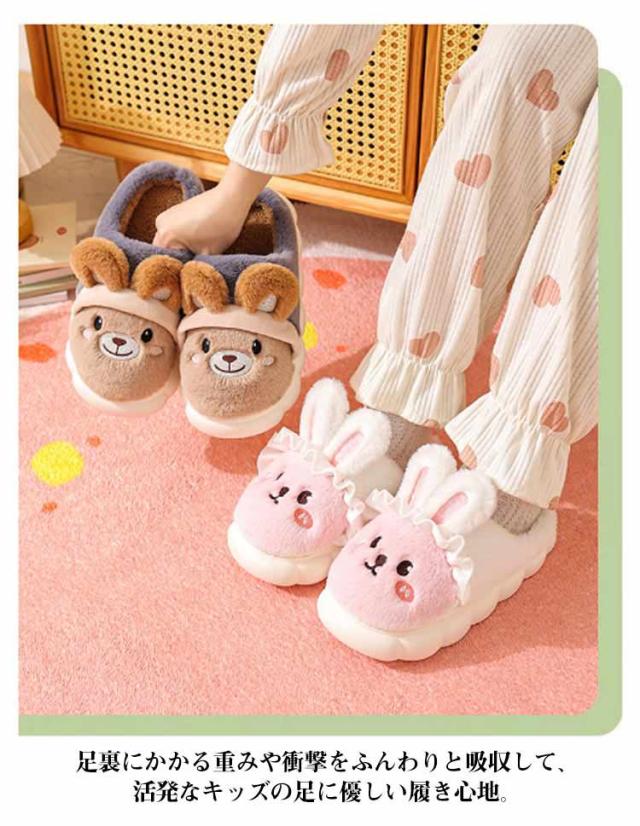 キッズ キッズ もこもこ 男の子 スリッパ ルームシューズ 暖かい うさぎ 女の子 かかとなし ボアスリッパ 子供用 子ども アニマル かわいい 裏起毛 保温 室内用 部屋履き あったか 防寒 ルームスリッパ 贈り物 ギフト 室内履き