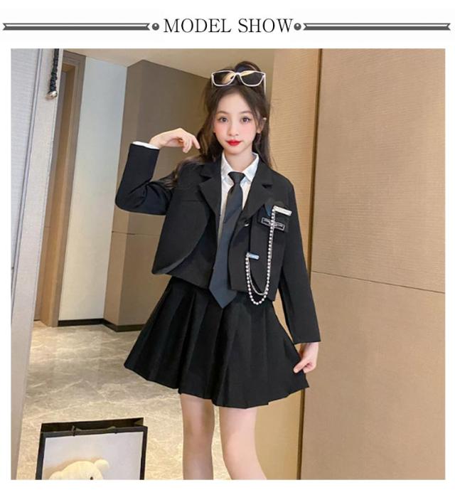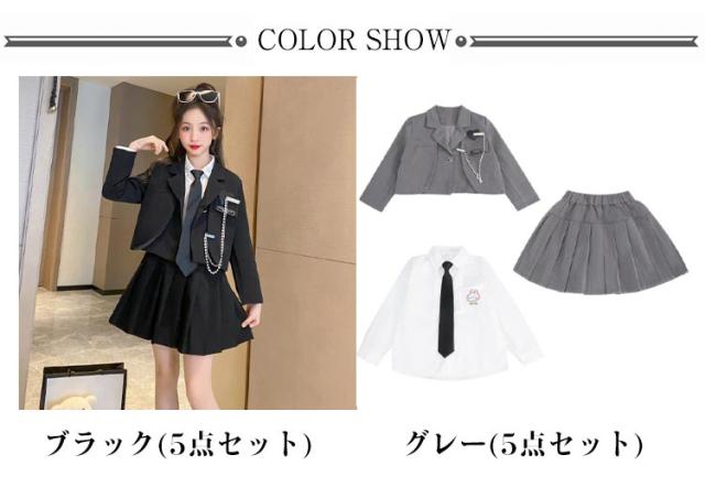 5点セット 韓国 卒業式 小学校女子 スカートスーツ 卒服 卒業式 スーツ 女の子 小学生 中学生 制服 ブレザー 入学式 スーツ 卒服 ジャケット 白シャツ 長袖 スカート ピアノ発表会 子供 フォーマルスーツ 小学校