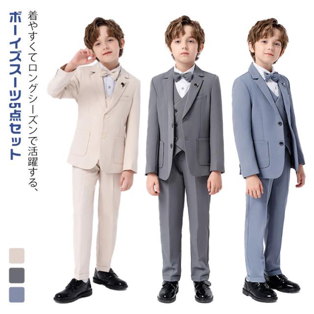 発表会 子供 フォーマルスーツ 男の子 スリム スーツ フォーマル スーツ 5点セット ジュニア 大きいサイズ 結婚式 男性 スーツセット ベスト リボン付き ピアノ発表会 卒業式 入学式 キッズ 無地 おしゃれ 上下セット セットアップ ギフト プレゼント 送料無料
