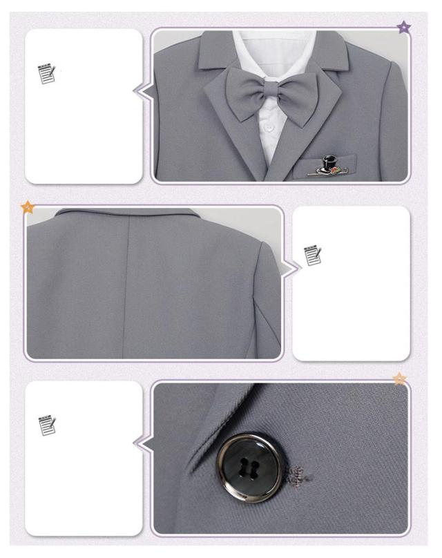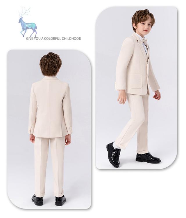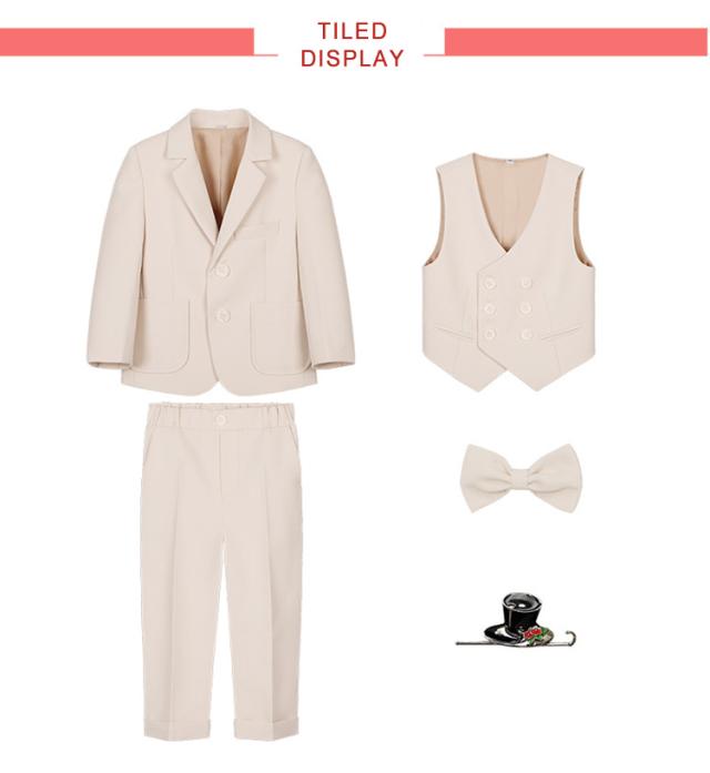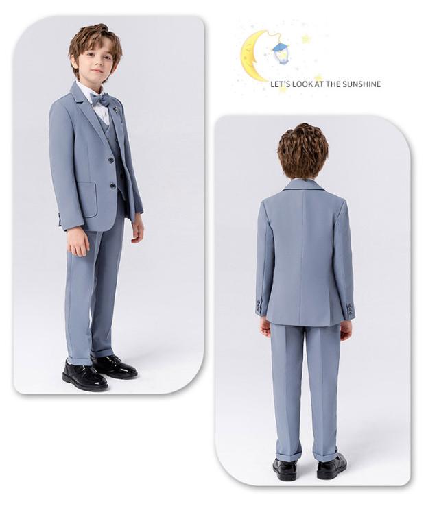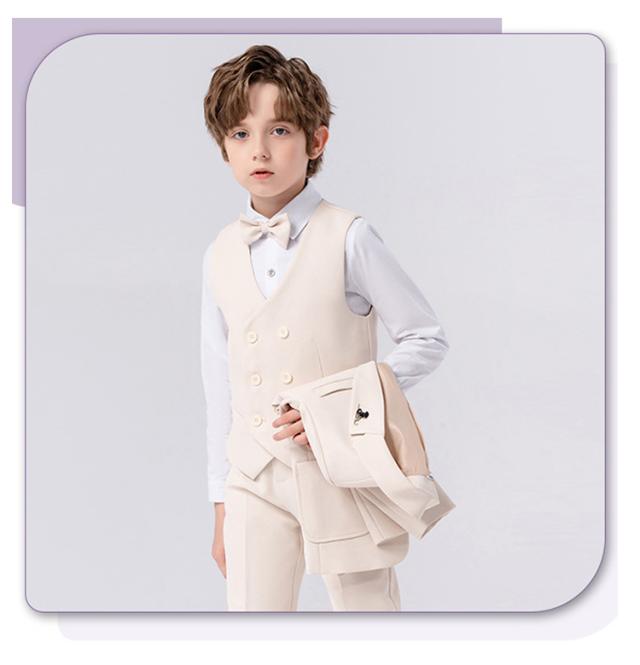 | 着やすくてロングシーズンで活躍する、ボーイズスーツ5点セット ジャケット+ベスト+パンツ+リボン+ブローチの5点セット。 長ズボンにこだわった細身のフィットするデザインで、足が長くスタイルが良く見えます。 胸元の演出に欠かせないポケットデザイン、変えるとお子様の雰囲気と表情が変わります。 お手入れ簡単のポリエステル素材を採用するので、型崩れしにくく、美しいシルエットをキープします。 卒入学式・発表会、ちょとしたお出かけ・結婚式などあらゆるシーンで使えます。 | |