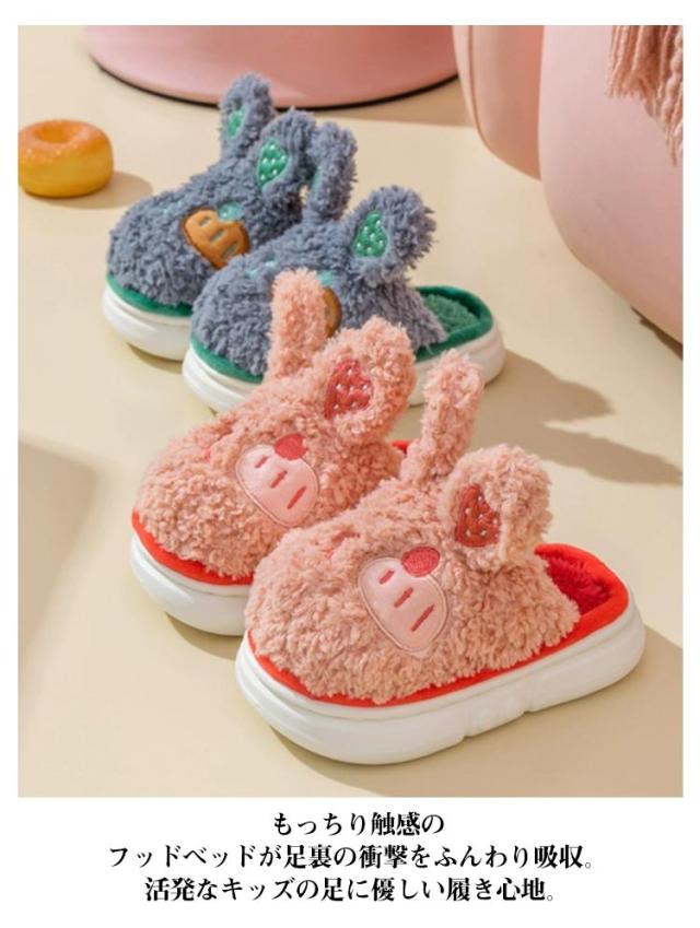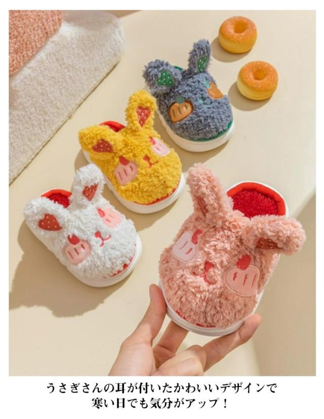 ルームシューズ ルームスリッパ 動物 もこもこ 暖かい キッズ あったか 室内 子供用 裏起毛 スリッパ ボア 部屋履き ふわふわ アニマル ウサギ 滑り止め 冬 防寒